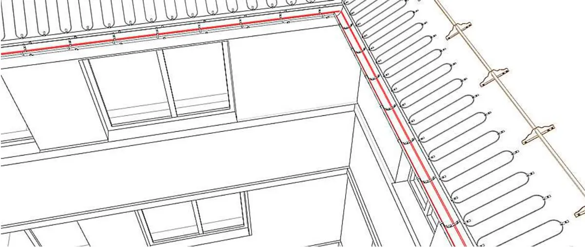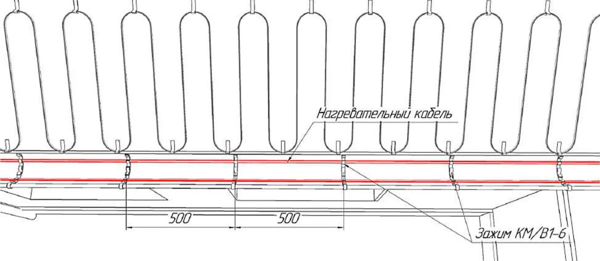 Крепление нагревательного кабеля по краю скатной кровли производится с