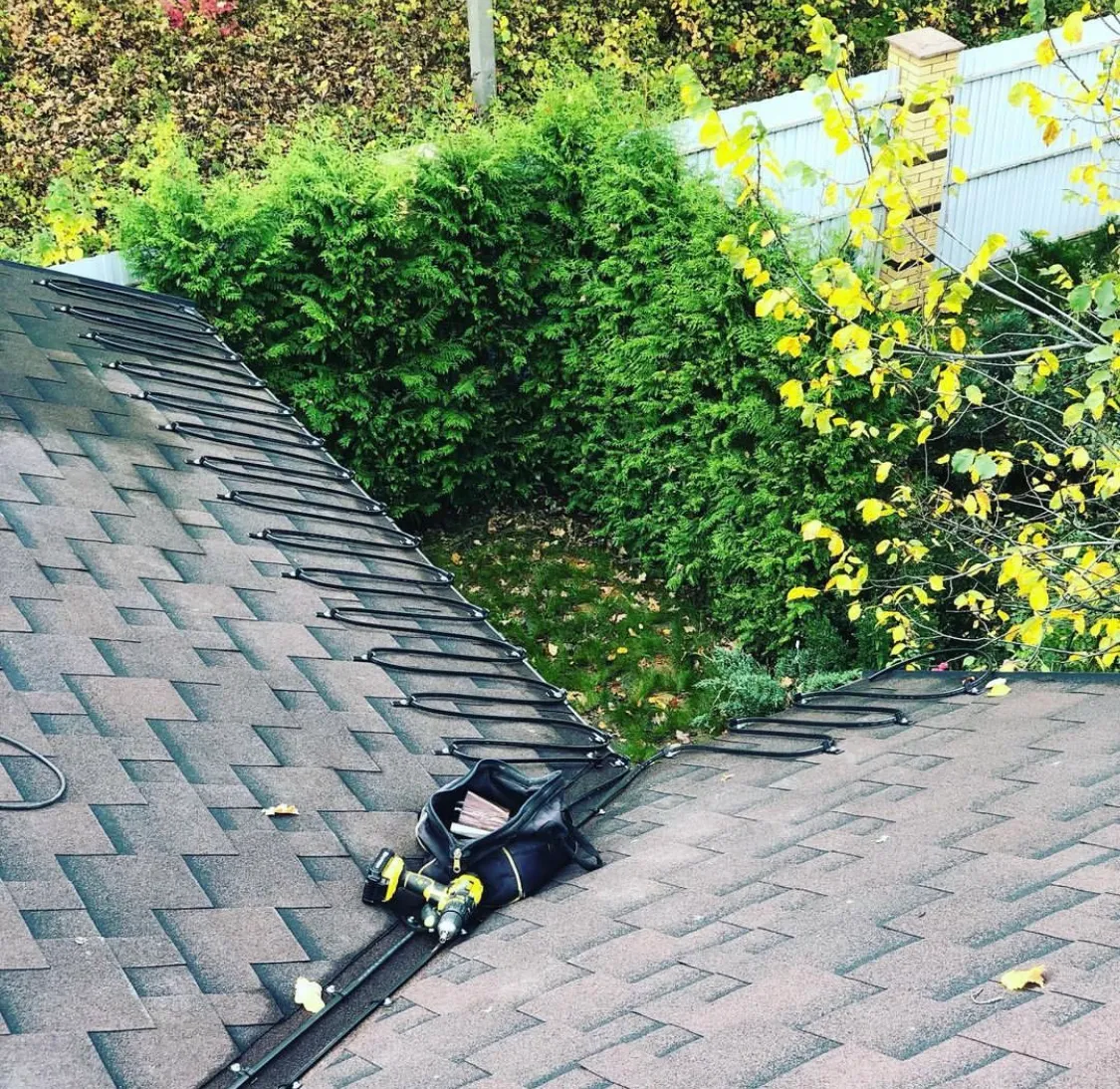 обогревать, как правило, прокладывают от двух до шести «ниток» нагревательного кабеля вдоль ендовы, длина обогреваемого участка составляет 2/3 длины ендовы.