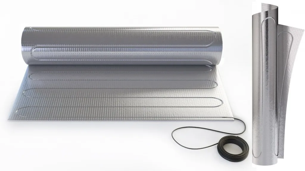 Алюминиевая фольга равномерно распределяет тепло нагревательного кабеля по всей поверхности.