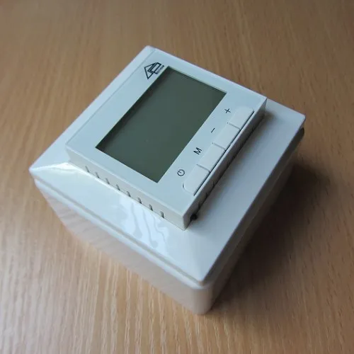 Применение коробки для наружного монтажа позволит сделать теплый пол и установить терморегулятор в помещении не только с внутренней, но и с наружной проводкой. (дача, загородный дом…)