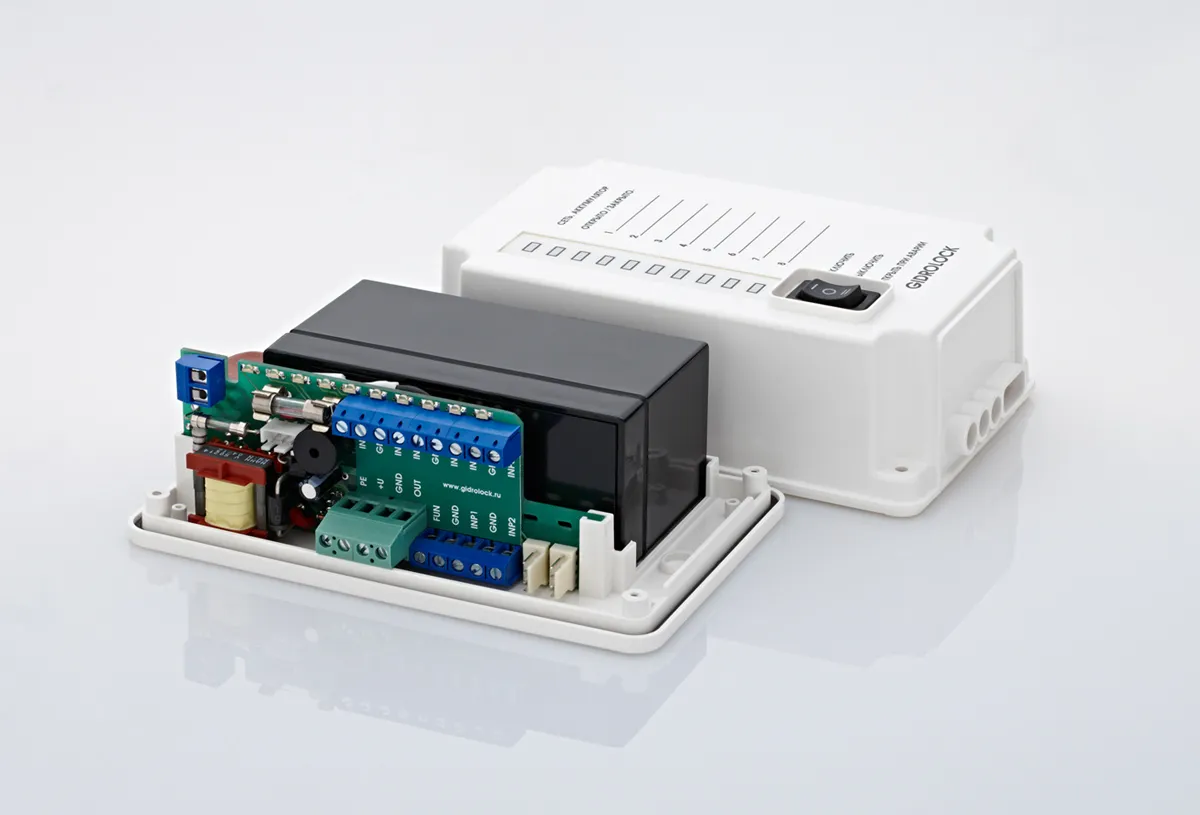Блок управления является элементом системы Gidrolock и предназначен для контроля состояния подключенных к нему датчиков протечки воды, управления шаровыми электроприводами и выдачи звукового оповещение при возникновении аварии в системах водоснабжения и отопления.
